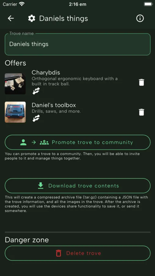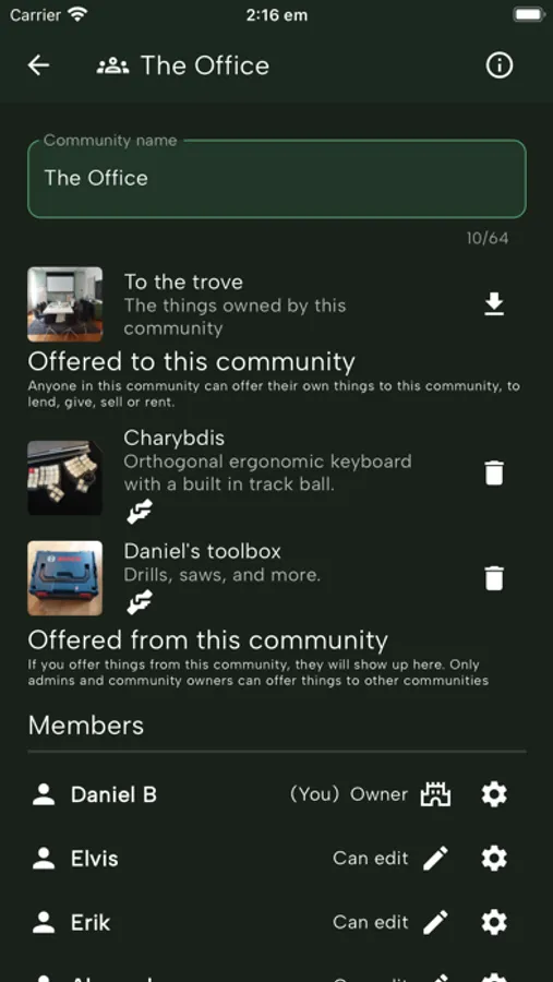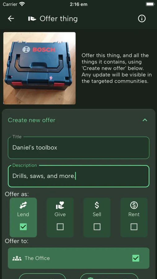 Offer your things to communities, to lend, give away, swap, sell, or rent.