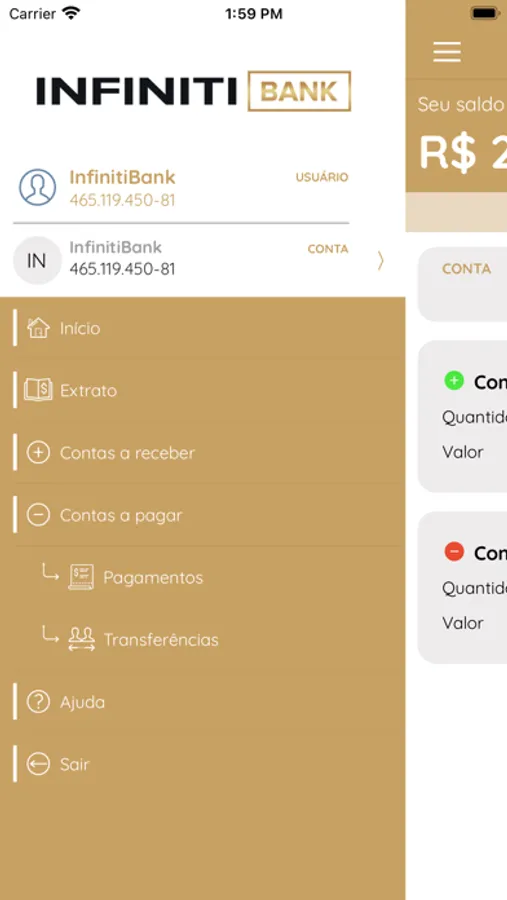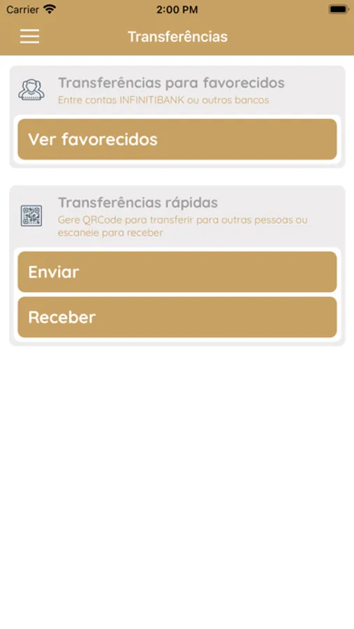 - Enviar e receber dinheiro para outras contas Infinitibank;