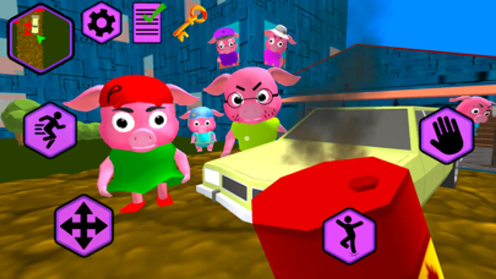 Explore the nice huge neighborhood location. Enjoy the Best hide & escape game about the Piggies Family!