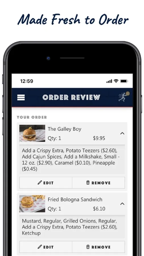 • Orders Made Easy: Conveniently reorder with saved meals and payment information.