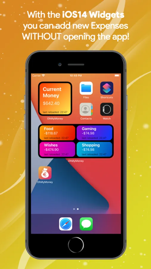 - iOS 14 Homescreen widgets that show you your groups and with just one click you can immediately add new expenses without having to open the app every time. IOS 14.1 or higher is required to use the iOS14 widgets.