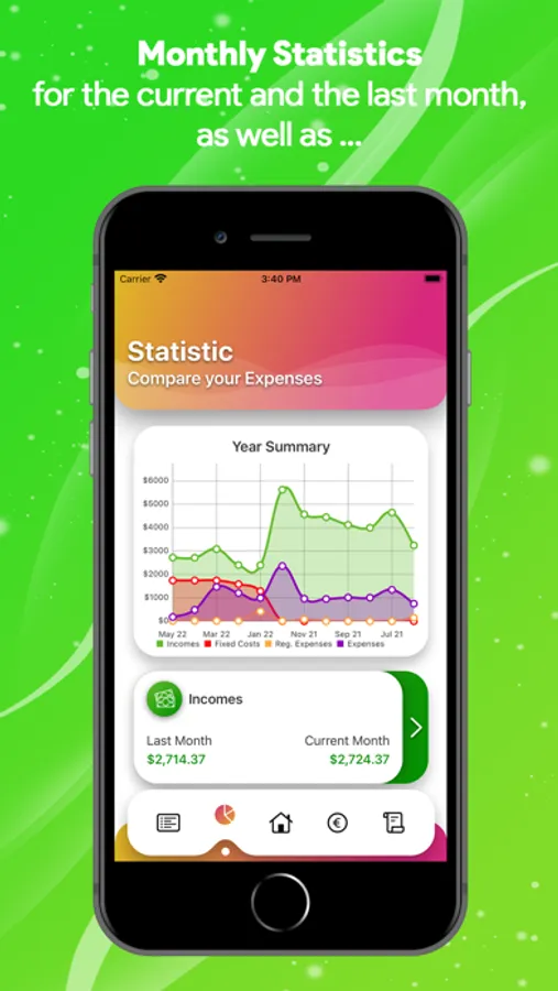 Take OhMyMoney, enter your income and fixed costs once, categorize your expenses and that's all you have to do. The app does it all, month after month.