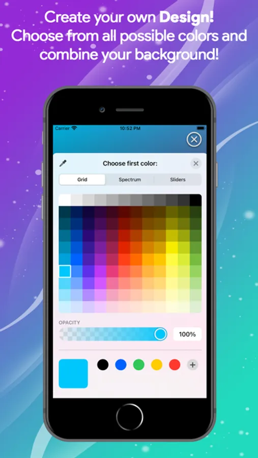 - Create your own design! Choose from all possible colors and combine them to your personal background.