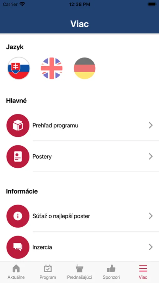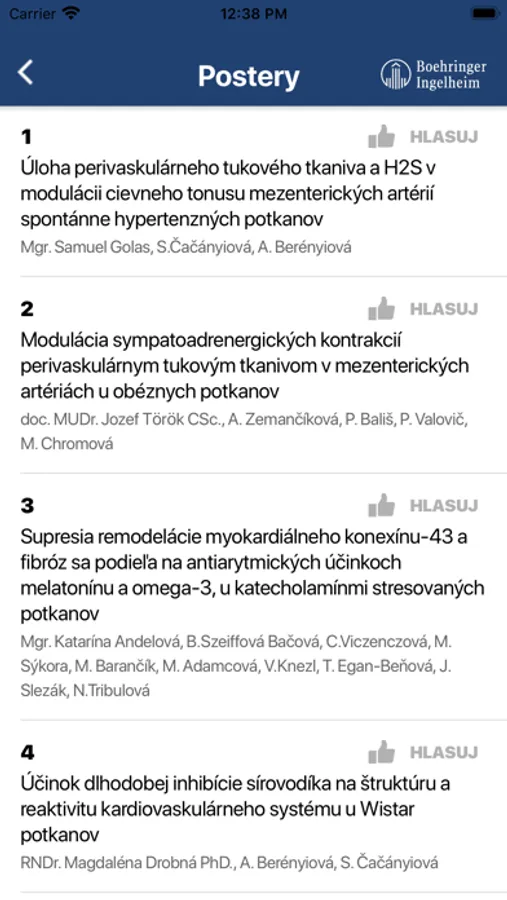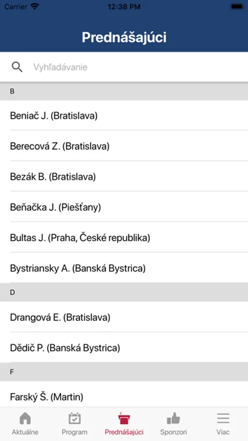 Aplikácia obsahuje aj zoznam prednášajúcich v ktorom je možné vyhľadávať, zoznam sponzorov ako aj zoznam abstraktov ktoré na kongrese odznejú.
