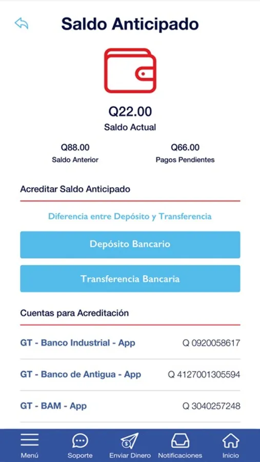 7. Espera la notificación de confirmación de la acreditación de tu saldo anticipado.