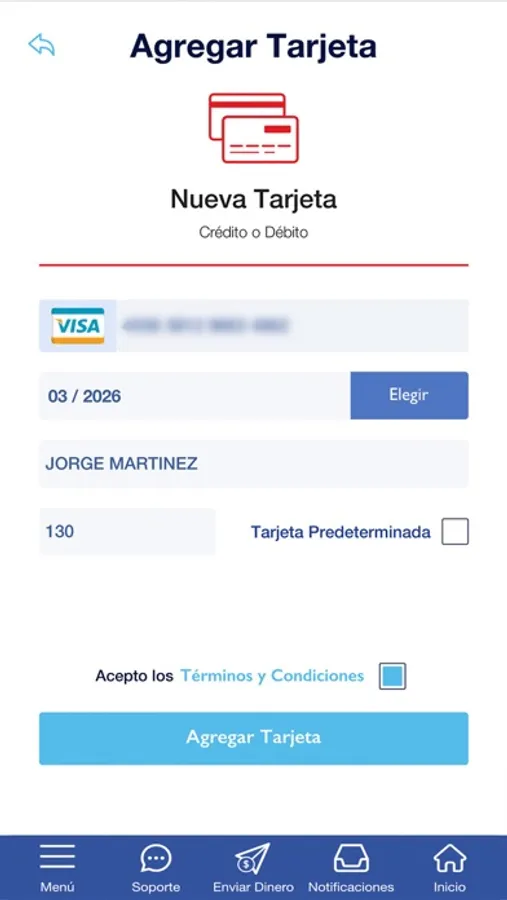 8. Agrega una tarjeta de crédito o débito Visa o MasterCard.