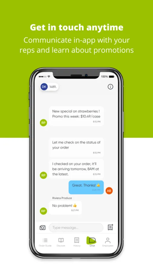 - Get in touch anytime: communicate directly with your Riviera Produce rep in the app