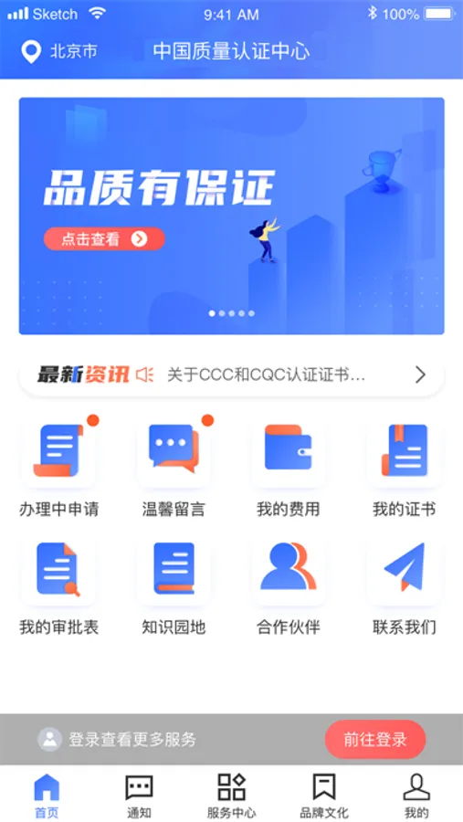 CQC认证手机APP,旨在为产品认证客户提供申请办理进度查询、电子证书下载、业务在线咨询及认证通知接收等移动端服务。