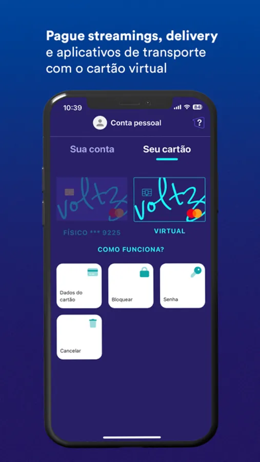 Você usa seu cartão físico ou virtual na modalidade crédito para qualquer compra, mas ao invés de comprometer seu limite ou fazer dívidas, a compra sai direto do saldo da sua conta. E o melhor: não tem taxas e nem anuidade!