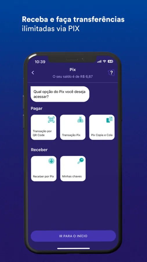 Receba dinheiro e pague as suas contas utilizando o PIX de forma rápida, com segurança e sem custo adicional.