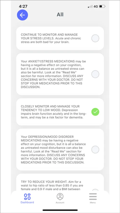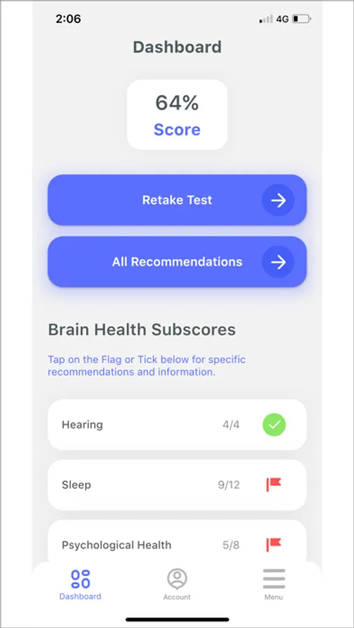 Take the BRAINSCAN test in the app and identify what you personally need to improve. Whether it be lifestyle choices, health conditions or medications, many things contribute to poor brain health.