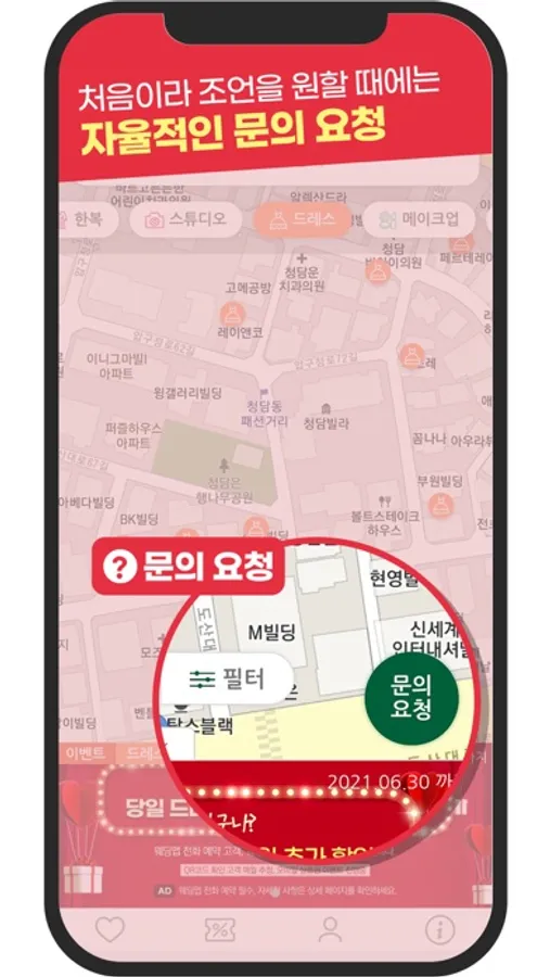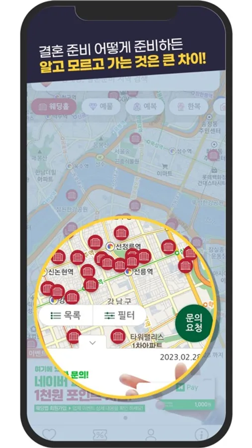 익숙한 사용자 환경, 웨딩홀부터 결혼 준비 상품 정보를 지도에 담았습니다.