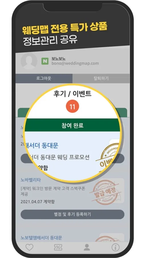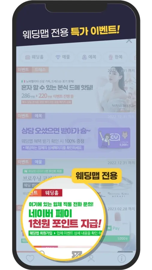 웨딩맵의 획기적인 이벤트를 함께 협업 등록해 드립니다.