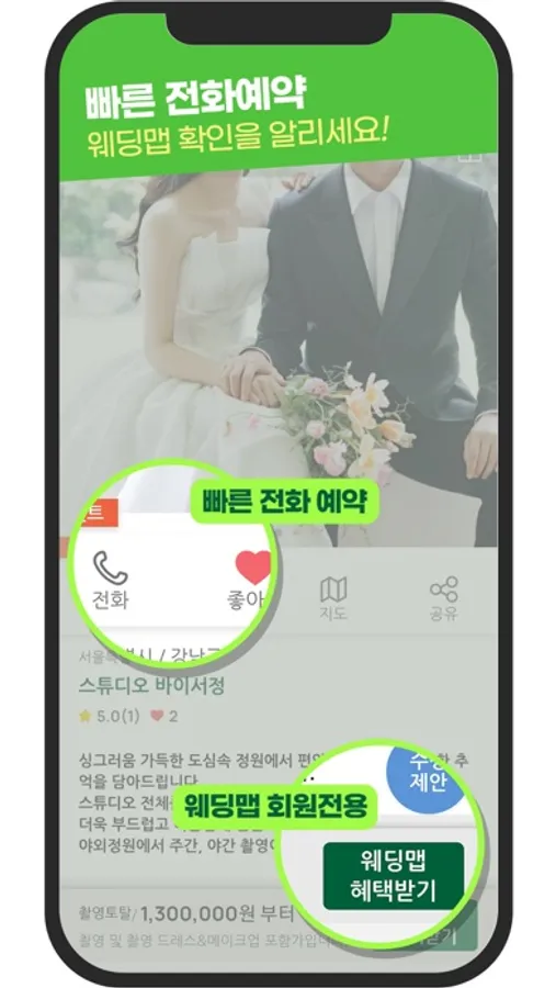 웨딩맵의 다양한 기능을 활용하시면 결혼 준비는 쉽게 이루어질 거예요.