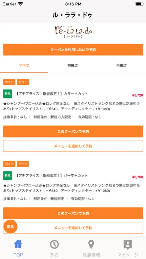 お得なクーポンが配信されます。ネット予約時にクーポン利用での予約も可能なので来店時もスムーズに施術頂けます。