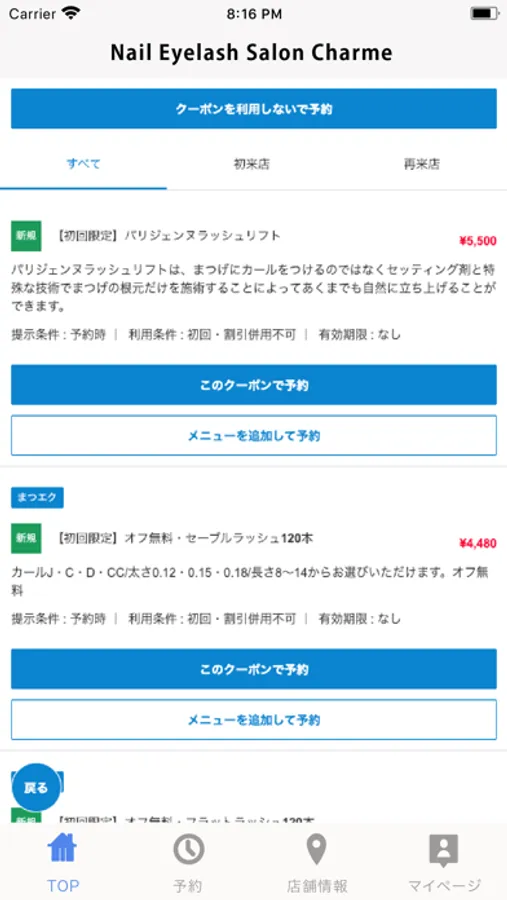 お得なクーポンが配信されます。ネット予約時にクーポン利用での予約も可能なので来店時もスムーズに施術頂けます。
