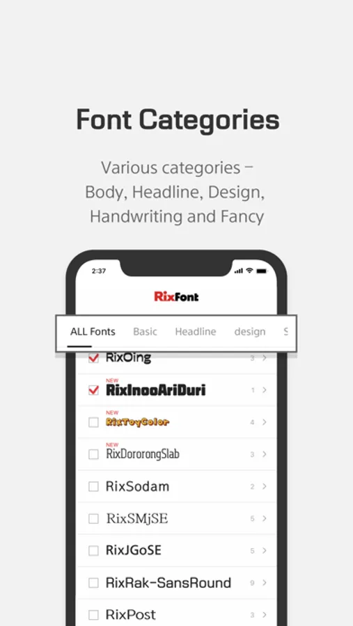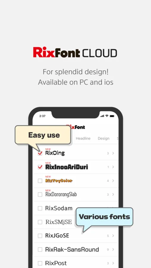 Only OTF Fonts are available on iOS RixFontCloud. The fonts will be seen as 'RixFont_Pro' on the font list in apps.