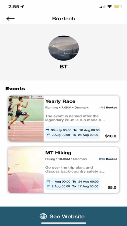 In the SportsEvent app you will find events published by organizers we work with. In the event overview you will find information about each event such as time, venue, route, start/finish and price for participation.