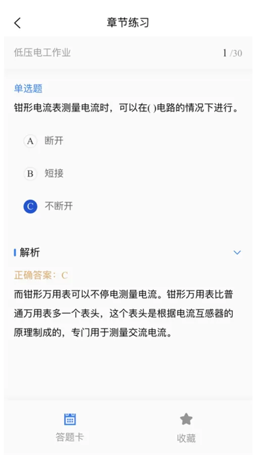 掌上电工软件是一款专为电工考试用户打造的手机在线学习服务应用软件,电工题库内有丰富的知识点,帮助用户快速通过电工考试,电工题库涵盖了低压电工,高压电工,电力电缆,继电保护,电气试验等题库,其中低压电工和高压电工及复审题库为历年真题题库,助力电气学者快速通过考试。