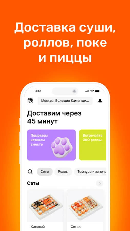 В меню вы найдете: роллы, суши, сеты, супы, салаты, горячие блюда, поке, пиццы и много других вкусных блюд.