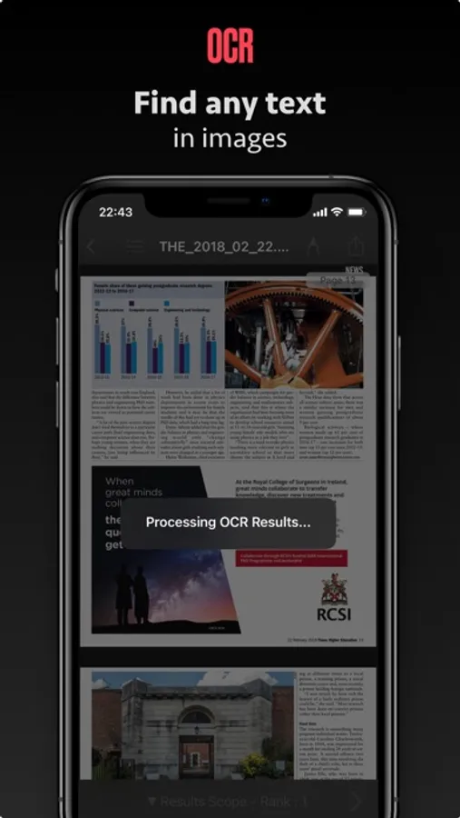 PDF Search comes equipped with a scanner tool, enabling you to scan documents, notes, or cards into PDFs. Enjoy searchable text within scanned documents, thanks to the OCR feature.
