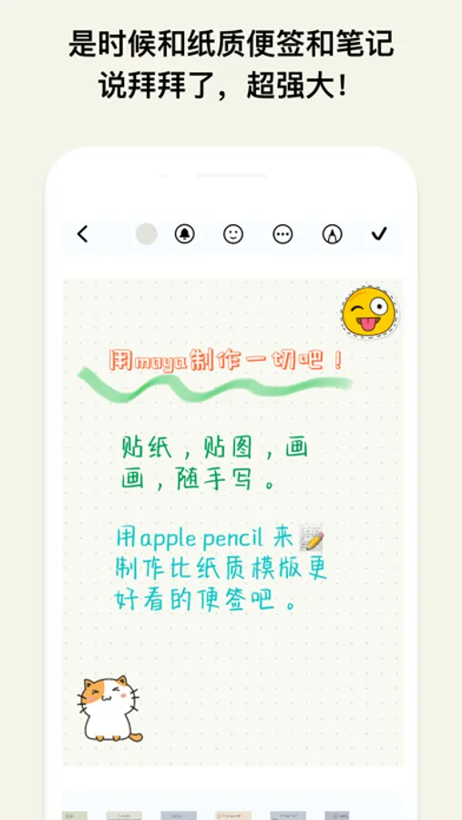 使用moya代替纸质的便签纸吧,支持强大的系统apple pencil,让你制作出各种可爱的清单计划日常,让你的的生活,简单且井井有条。