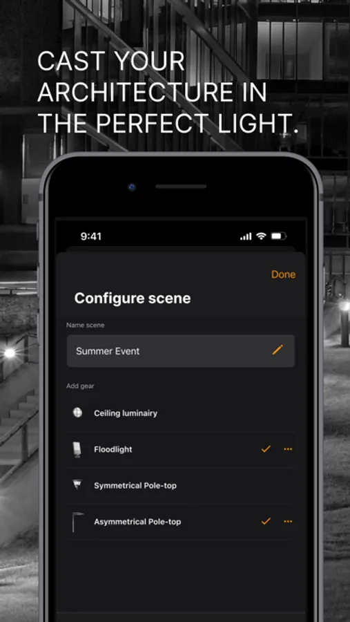 BEGA Connect allows you to make every architecture project stand out with smart light. Wherever you are: you can now plan and monitor individual luminaires or even entire systems from any location using our modern and intuitive app. All you need is an internet connection.
