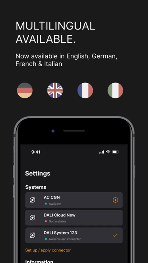 BEGA Connect means: focusing on what's important, simple and intuitive. The user interface of the app has been specially designed so that BEGA Connect can be operated without any technical knowledge. Digital, mobile and flexible. Whether it’s for small lighting installations or large lighting projects. Create individual lighting scenarios and luminaire groups, and control the light colour and colour temperature on RGBW and tunable white luminaires.