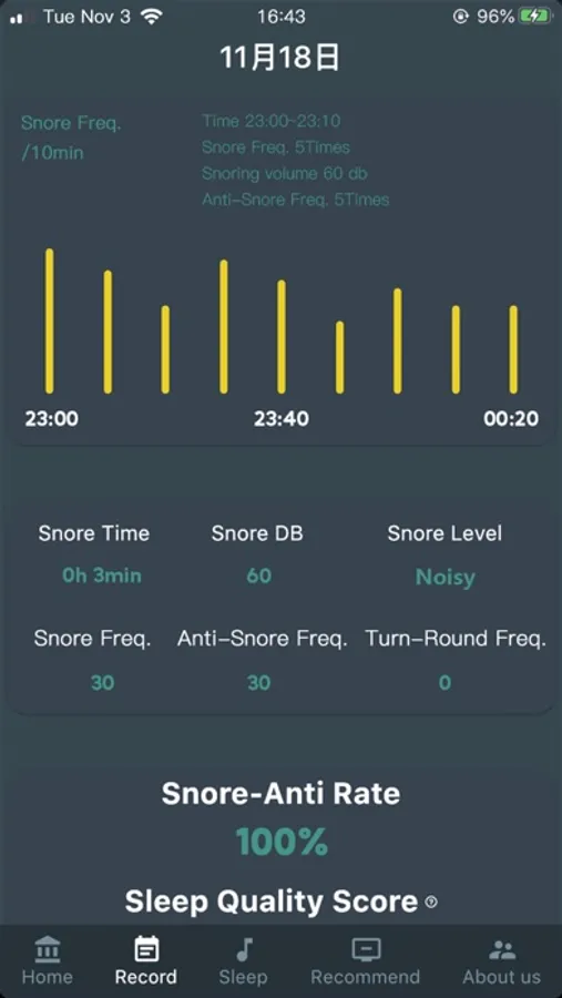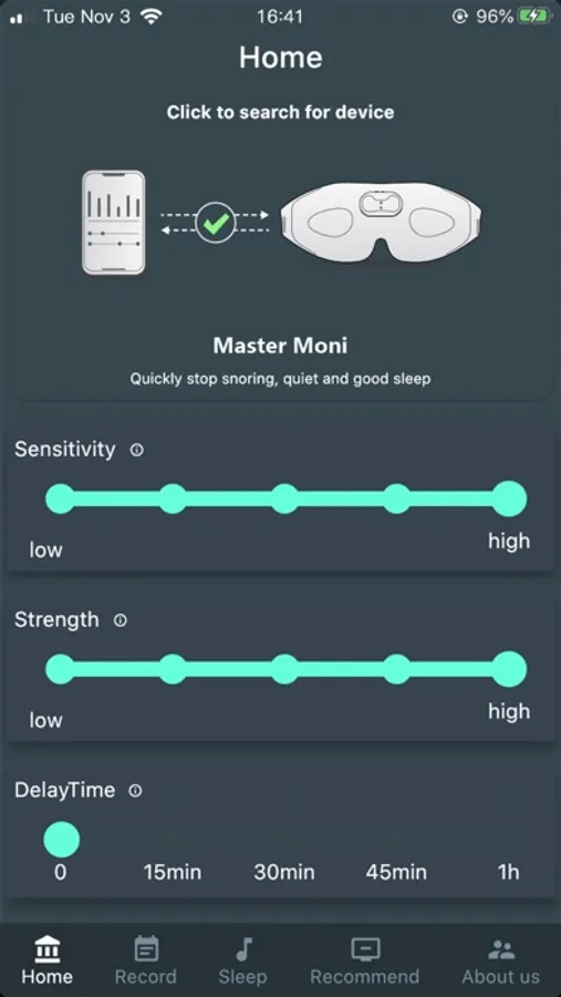 1. It is detected that snoring is stopped by vibration intervention by bone conduction