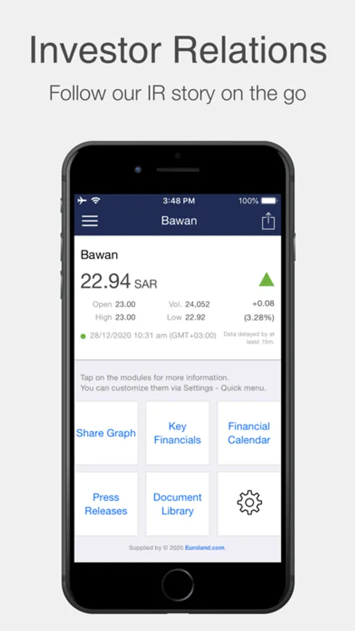 The Bawan Company Investor Relations app will keep you up-to-date with the latest share price data, stock exchange and press releases, IR calendar events and much more.
