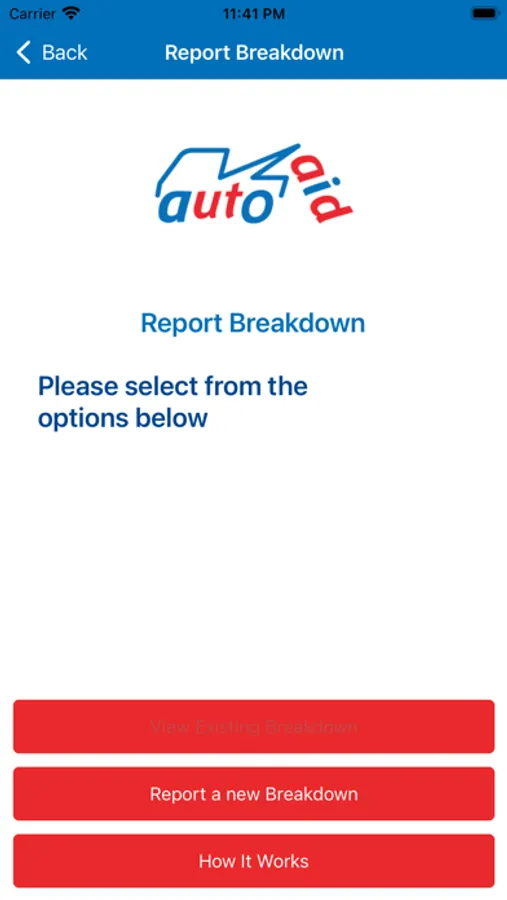 AutoAid Breakdown Assistance allows you to report your breakdown without having to make a telephone call.