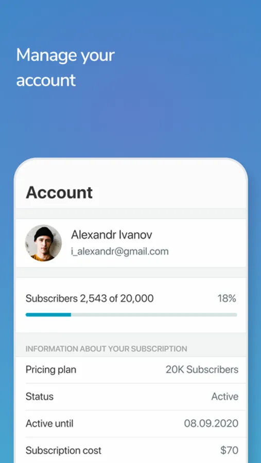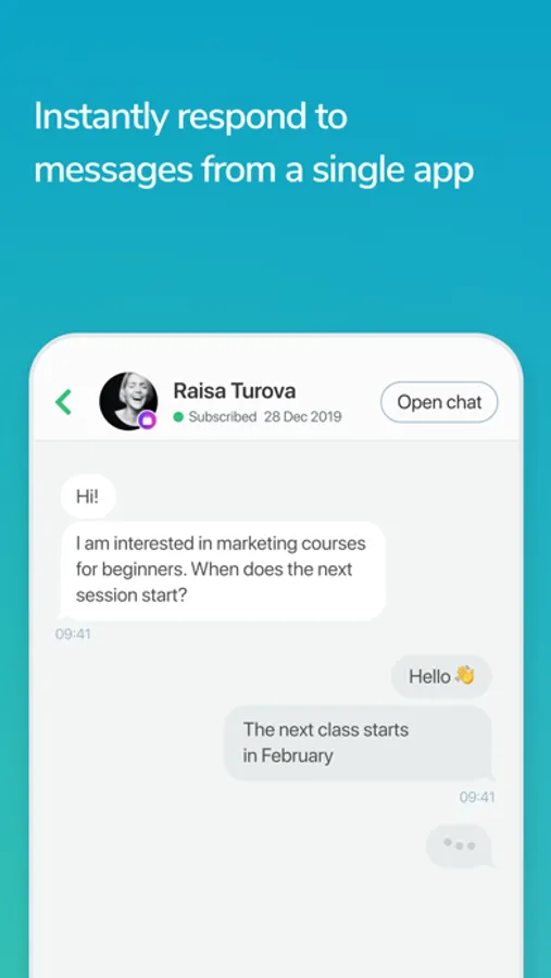 The app helps you stay in touch with your subscribers, engage in chats after instant notifications, answer questions, and view or change subscriber information.