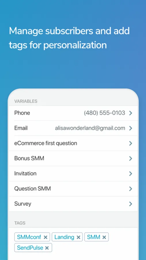 Manage Subscriber Information - change variable values and assign tags as soon as you receive new data about your subscribers.
