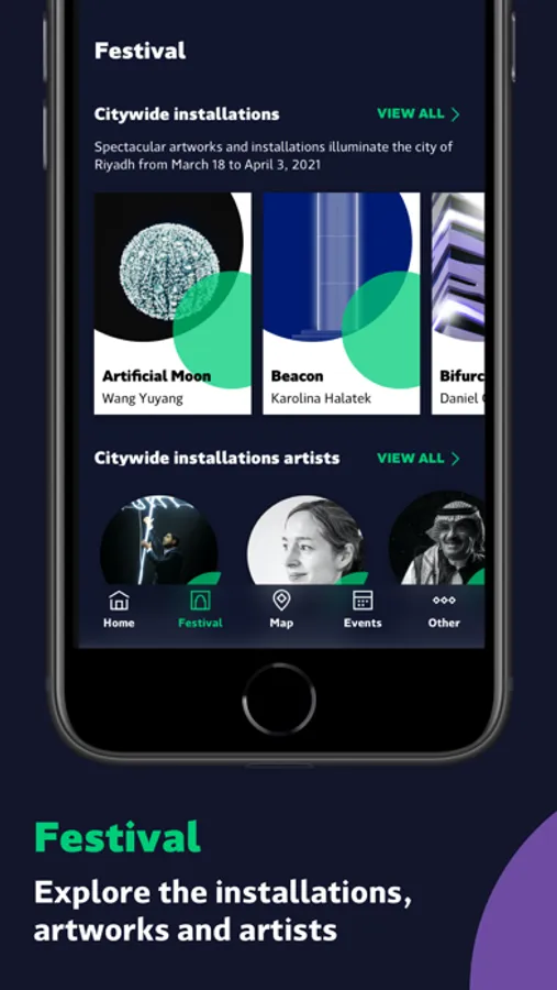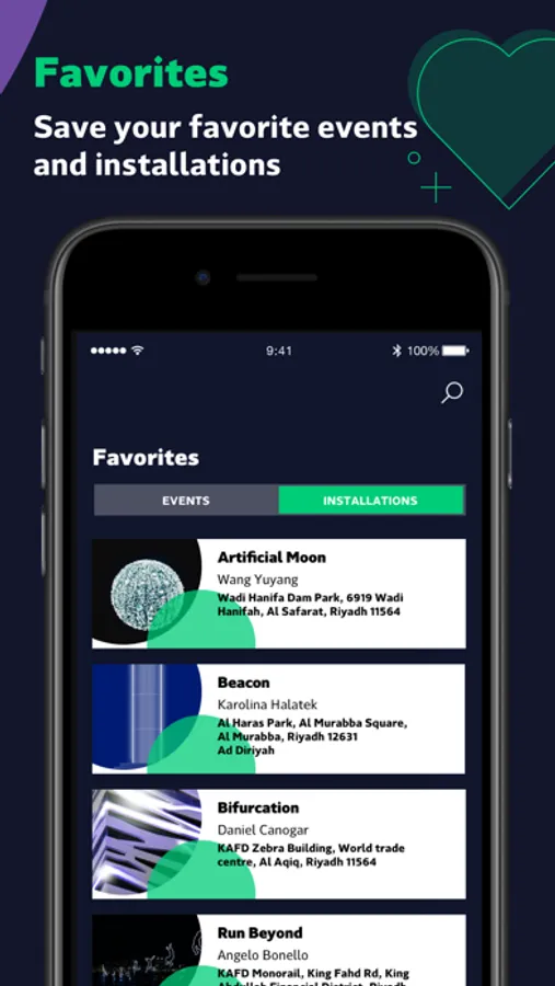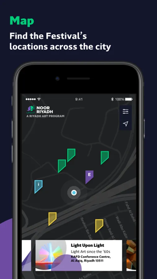 The Noor Riyadh app is the definitive guide to Saudi Arabia’s first festival of light and art illuminating the city of Riyadh each year in March. The app allows you to customize your festival visit and learn more about the featured artists, artworks and installations, and events program.