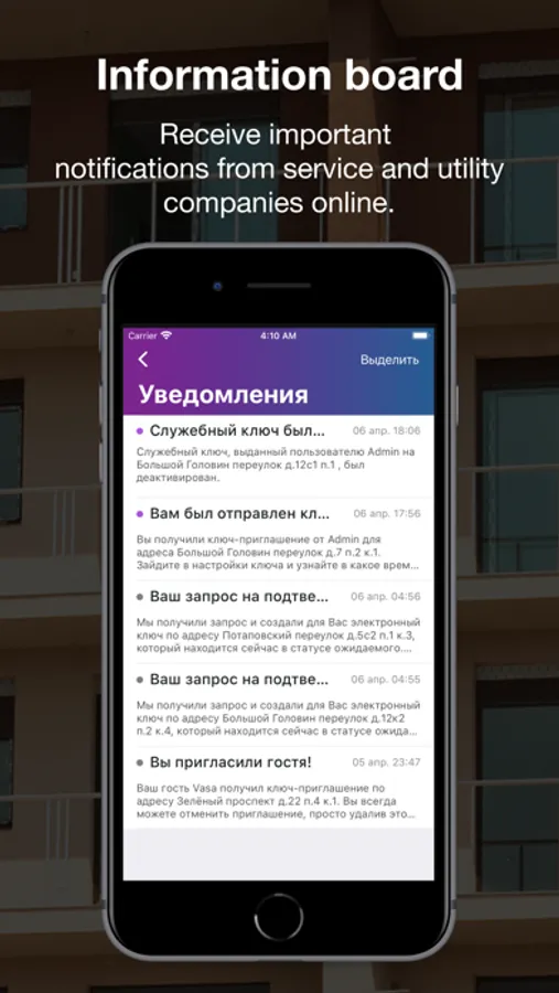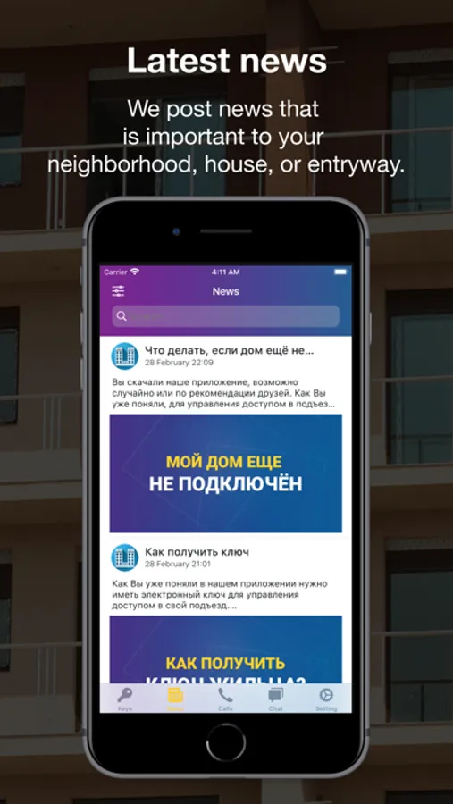 Stay up-to-date with the latest news from your neighborhood, home, and entryway. Personalized and up-to-date news. Nothing superfluous, just important information on the place of residence with subscription settings.