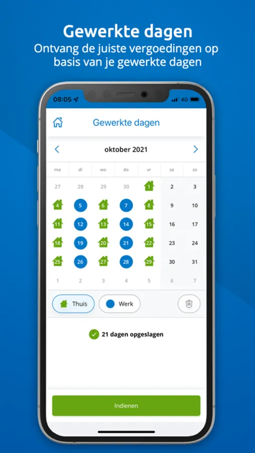 - Days worked: Easily specify which days you work from home and when you travel to the office, and the appropriate travel and homework allowances are automatically calculated and paid via your salary.