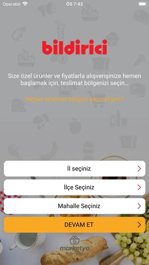 Bildirici Mobil uygulamasını kullanmak çok kolay. Kullanıcı kaydınızı oluşturarak ürünleri sepetinize ekleyin ve teslimatın yapılmasını istediğiniz adresi seçin, market alışverişiniz kapınıza kadar gelsin. Hepsi bu kadar.
