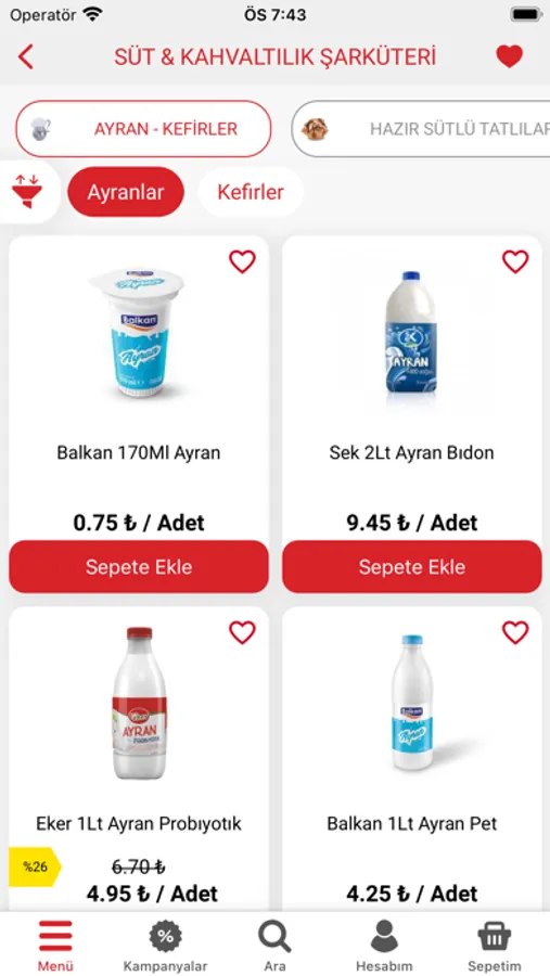 Binlerce ürün tek bir uygulama ile cebinizde. Meyve sebze gibi taze ürünler, et, şarküteri ürünleri, unlu mamüller, temizlik, kişisel bakım ürünleri, atıştırmalıklar ve içecekler gibi onlarca kategoride binlerce ürün parmaklarınızın ucunda. Bir marketten alabileceğiniz ne varsa hepsi tek bir uygulamada. Kanun gereği online siparişlerde tütün mamülleri ve alkol satışı yapılamamaktadır.