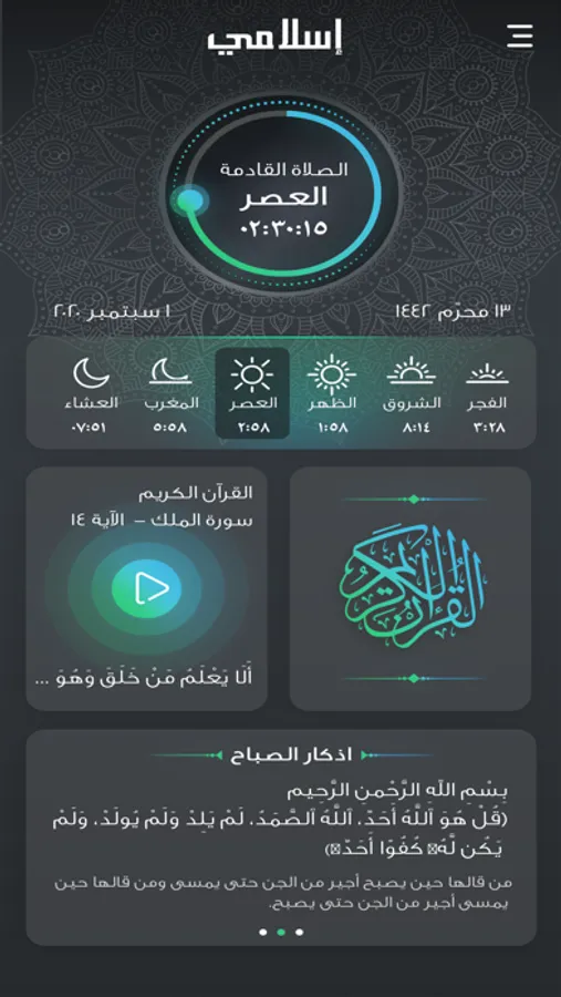 إسلامي: هو أحدث تطبيقات القرآن الكريم كاملا (مصحف إلكتروني) التي تم تطويرها لوجه الله تعالى لخدمة المستخدم للاستماع لكل المشايخ العربية تحت رعاية شركة عربيات
