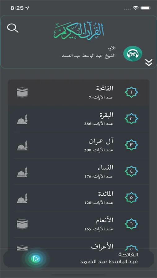 -القرآن الكريم صوتا لكل المشايخ العربية بالاضافة لإمكانية مشاهدة نص السور اثناء التلاوة