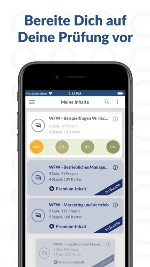 Bereite Dich auf Deine IHK-Prüfung zum Geprüften Wirtschaftsfachwirt vor! In dieser Lern-App findest Du zahlreiche Quizfragen und Karteikarten (inkl. Erläuterungen und weiterführende Weblinks) zu den folgenden Themen:
