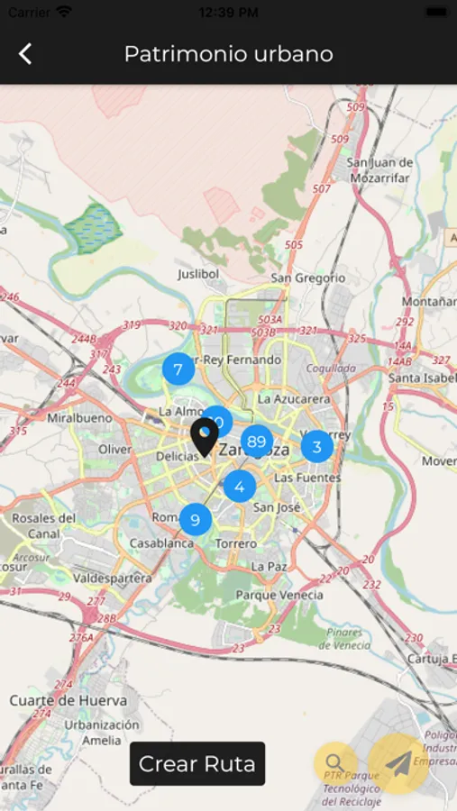 El usuario estará permanentemente geolocalizado sobre el mapa de ubicación, y desde él accederá a los ítems, incluso podrá seleccionar rutas preestablecidas.
