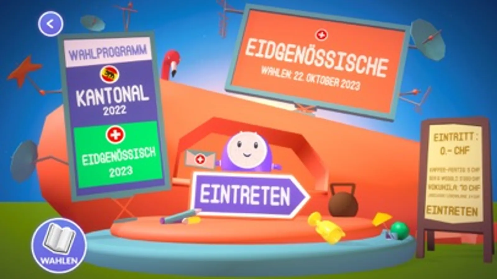 In DOPE Elections buhlen die Kandidierenden um deine Gunst. In diesem Race Royale findest du heraus, welche Kandidierenden am besten zu dir passen. Du entscheidest, wer den Schlüssel ins kantonale Parlament verdient!