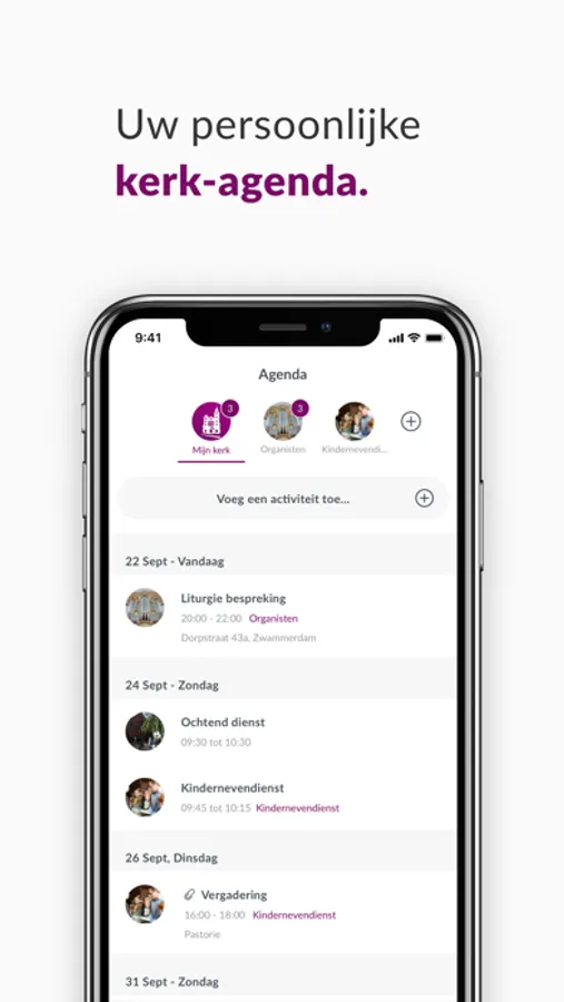 Dankzij onze unieke groepenstructuur helpen wij kerken beter te communiceren. Met de hele gemeenschap, maar ook onderling. U kunt zelf groepen toevoegen en mensen daarvoor uitnodigen. Een slimme timeline zorgt er voor dat iedere gebruiker persoonlijke en relevante informatie ziet.