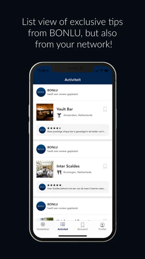 Met de BONLU app nodig je gemakkelijk je netwerk uit om de meest exclusieve tips met elkaar te delen.