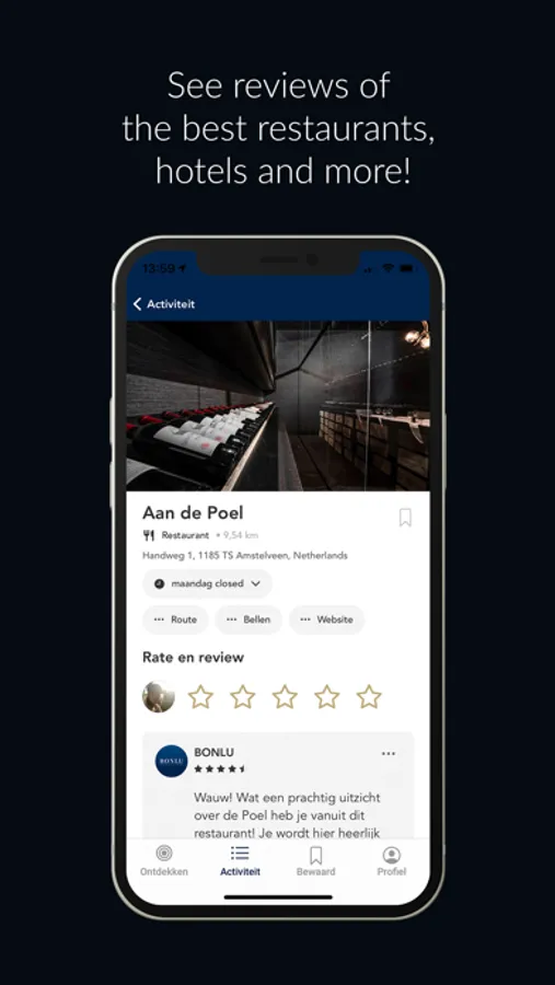 Onze redactie deelt alleen de beste plekken, zoals de Michelin sterrenrestaurants of luxe 5 sterren hotels. Daarnaast kom je ook allerlei andere exclusieve hotspots tegen in de BONLU app. Hierbij kan je denken aan luxe taxidiensten, exclusieve boetieks, cocktailbars en meer.