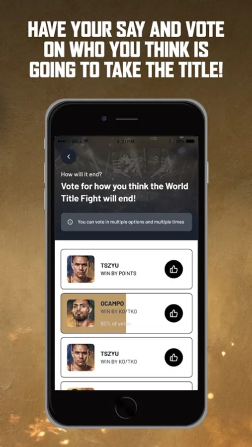Have your say! Be part of the live voting experience in the No Limit Boxing arena. Cast your vote and light up the stadium.