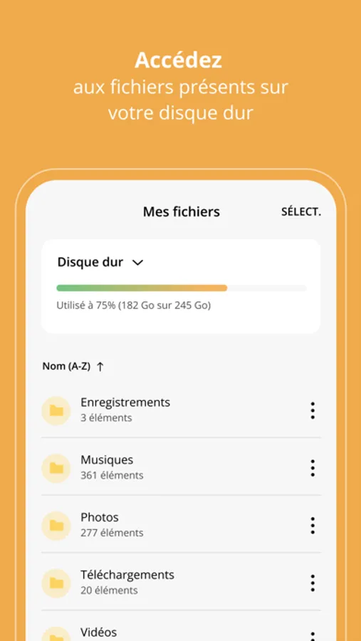Autre Freebox : branchez votre disque dur personnel et retrouvez vos données, accessibles depuis votre smartphone.