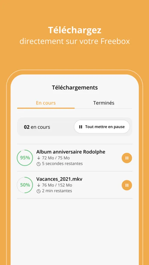 Lancez un téléchargement via un lien URL, un fichier torrent ou un lien magnet depuis n'importe où, puis laissez votre Freebox faire le travail.