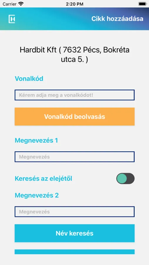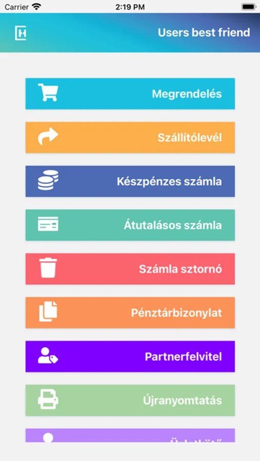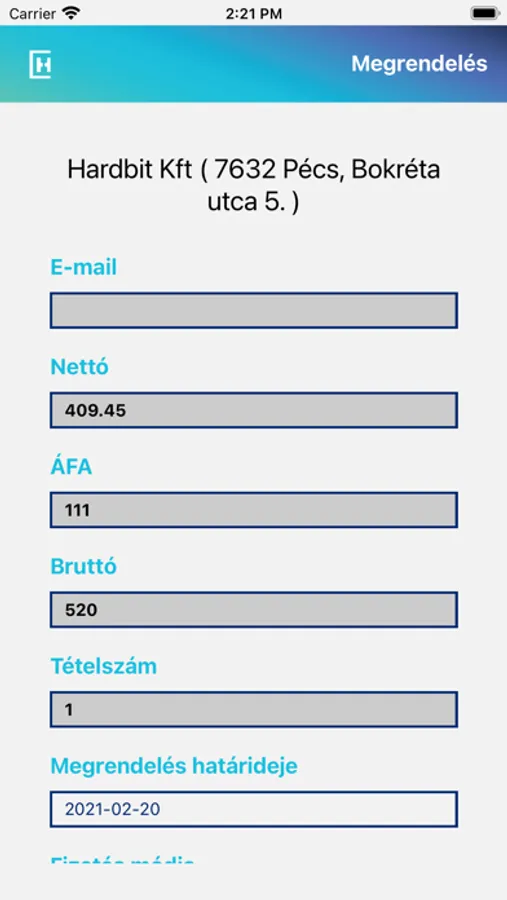Applikáció számlázáshoz és szállítók feladatának elátásához.